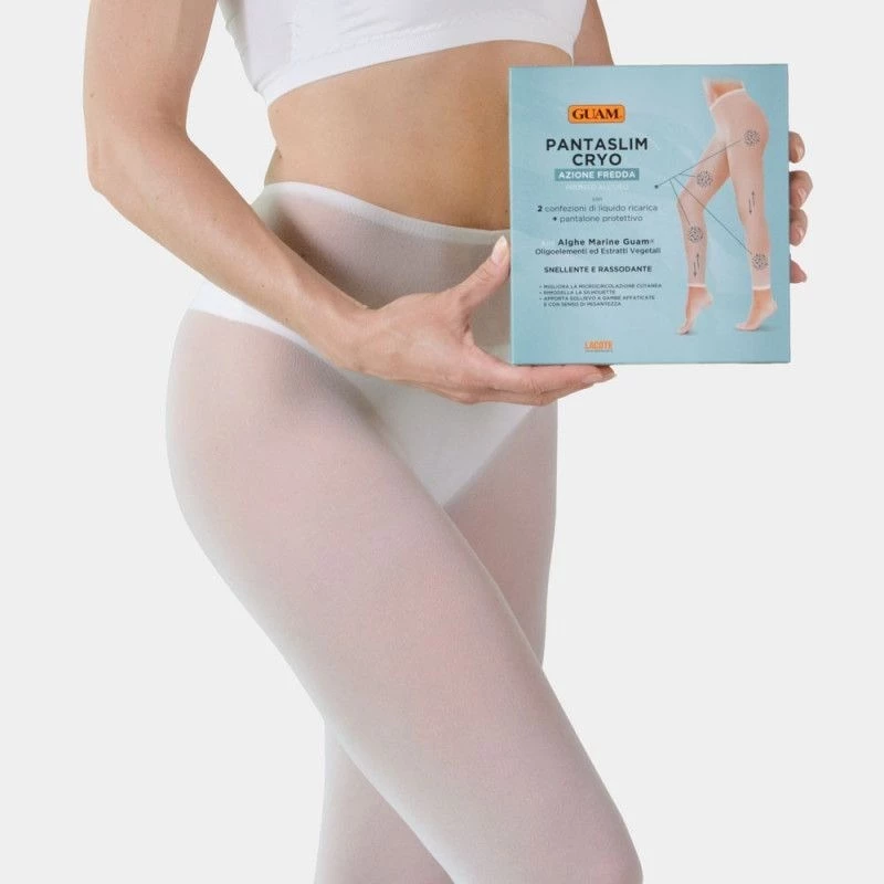 Антицелюлітний комплекс PANTA SLIM CRYO складається зі спеціальних штанців багаторазового використання PANTA SLIM (знаходяться у пакеті сірого кольору зі спеціальною zip-застібкою), Лосьйону для повторного просочення штанців (2 пакування) та захисних штанців (знаходяться у прозорому пакеті), які підсилюють ефект процедури.