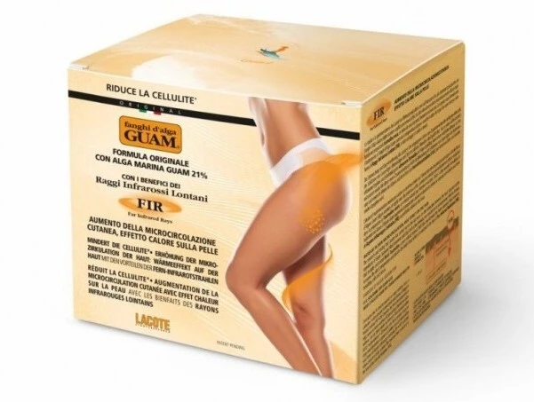 Антицелюлітна маска з морських водоростей GUAM FIR з дією Fangi d’Alga GUAM® FIR (seaweed mud) – інноваційний винахід. У новій версії знамениті антицелюлітні маски GUAM, що не піддаються імітації, поєднані з дією довгохвильового інфрачервоного випромінювання FIR (Far Infrared Rays)! Має антицелюлітну дію – сприяє зменшенню підшкірного жирового прошарку – сприяє зменшенню об'єму стегон.
