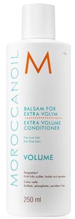 Кондиціонер MoroccanOil Extra Volume від ізраїльського бренду покликаний створити неймовірний об'єм волосся, зміцнити та подарувати блиск та сяйво локонам. В основі кондиціонера знаходяться цілющі властивості цінної арганової олії, яка здавна відома своїми цілющими властивостями. Підходить для ослабленого, позбавленого об'єму, а також фарбованого волосся. Має приємний аромат.