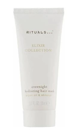 Особливості Rituals Elixir Collection Overnight Hydrating Hair Mask: - формула з натуральною олією аргани, яка збагачена вітаміном Е, для пом'якшення, харчування, відновлення та зволоження волосся; - шикакай у складі має ефективну кондиціонуючу дію, надаючи волоссю блиск і гладкість; - полегшує розчісування волосся, запобігає їх сплутуванню; - захищає локони від ламкості та посіченості; - насичує волосся дзеркальним сяйвом; - має приємну текстуру та аромат. склад Україна Rituals Private Collection 18+ Універсальний Маска для волосся Міддл маркет Ароматизація Для жінок Всі типи Сухе 20ml Нідерланди Косметика для волосся Косметика по догляду Нідерланди Олія арганії Олія Цубакі.