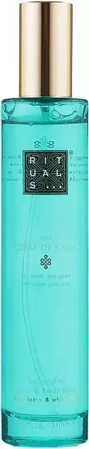 Аромаспрей Rituals Ritual of Karma Hair & Body Mist містить унікальну комбінацію нот, що включають свіжі цитрусові нотки, м’який і квітковий акорд лотоса і освіжаючий морський бриз. Цей гармонійний і витончений аромат подарує вам відчуття розслаблення та благополуччя, даруючи душі та тілу моменти спокою та насолоди.