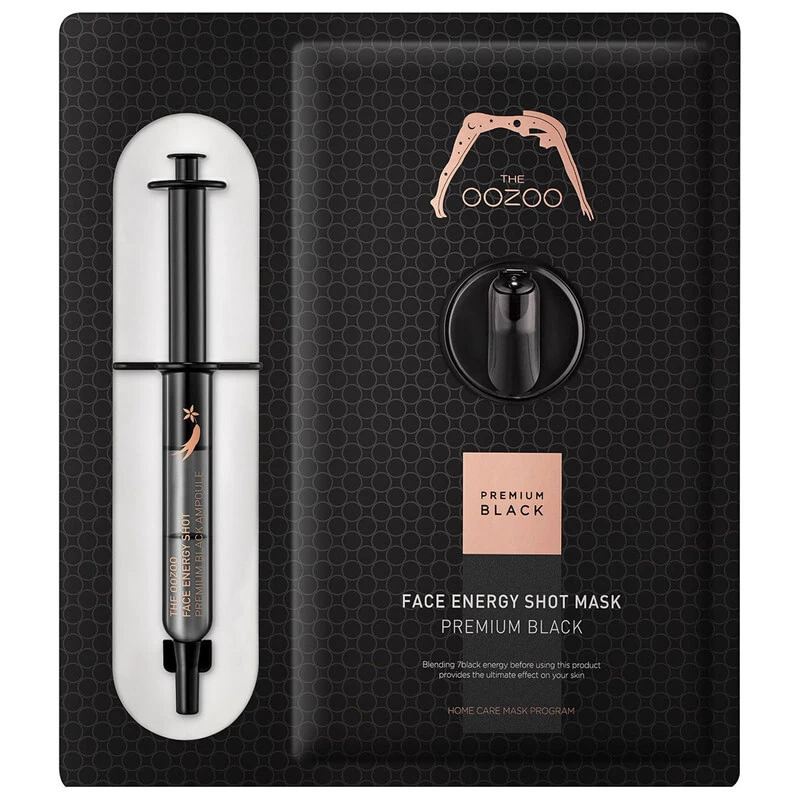 Преміум маска з високою концентрацією рослинних екстрактів The Oozoo Face Energy Shot Mask Premium Black 7 преміальних інгредієнтів, які зберігаються в шприці-активаторі, з метою забезпечити кращий ефект, змішуючи його перед використанням. Комплекс з 7 основних інгредієнтів бездоганно живить і наповнює живильними інгредієнтами, а колір обличчя стає здоровішим і світлішим. Комплекс «чорна енергія-7 компонентів» дозволяє підтримувати вашу шкіру гідратованою і пружною.